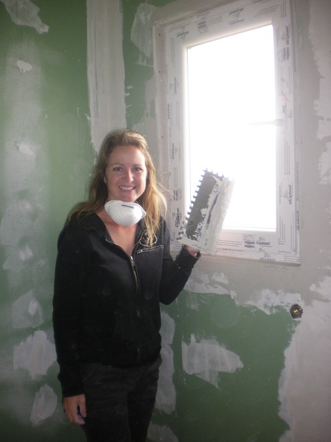 The first construction job I had was cutting trim for windows. After that I mudded windows, then walls, then corners in several rooms. My next job, and my favorite one, was insulation. With a couple different teams on different days we really got a rhythm going, and made a ton of progress in the attic. It just goes to show that you never know what you might like doing, because at first when I heard we were going to be working with insulation I was pretty apprehensive. The thought of getting fiberglass slivers wasn‘t very enticing, and since I have claustrophobia the thought of working in an attic was a little daunting. However, our fancy marshmallow space suits protected us from getting scratched or itchy from handling the ‘material‘, and working in the attic didn’t feel as smothering as I thought it would! Now I’ve got a few skills under my belt for when my Dad decides to build his next house, too. 🙂