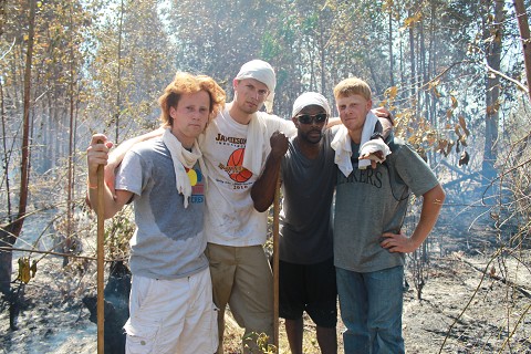 stop the path of the fire. The guys had wet rags on their faces in an attempt