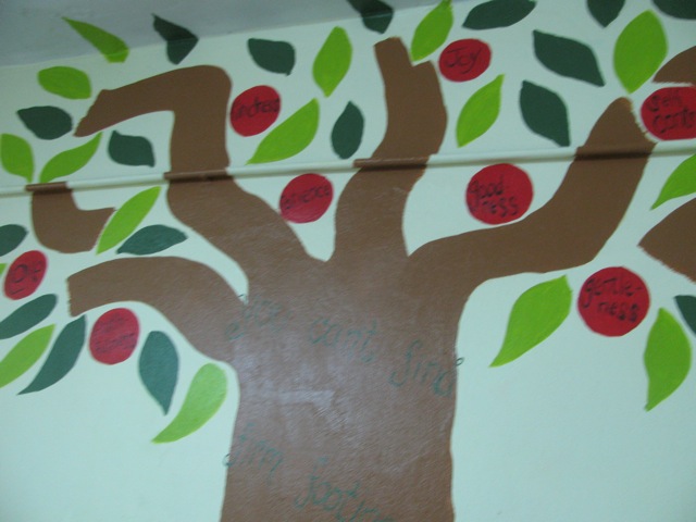 There is a mural in the room where we are staying that displays a tree with the fruits of the spirit. Love. Joy. Peace. Patience. Kindness. Gentleness. Fairhfulness. Self Control. The mural is right above my bed. As I lay in bed, I look at the fruits and wonder the number of fruits I actually display in my life. In Galatians, the opposite is described as the deeds of the flesh. The scripture says that these are evident. Immorality. Impurity. Sensuality. Idolatry. Sorcery. Enmities. Strife. Jealousy. Outbursts of anger. Disputes. Dissensions. Factions. Envying. Drunkenness. Carousing. If I were to take a survey of my daily life, I am afraid that the deeds of the flesh are actually more evident. There are moments that the fruits of the spirit are fragrant in my life. But as I stare at the mural, I long for seasons and not just moments when the fruit of the spirit is evident in my life.