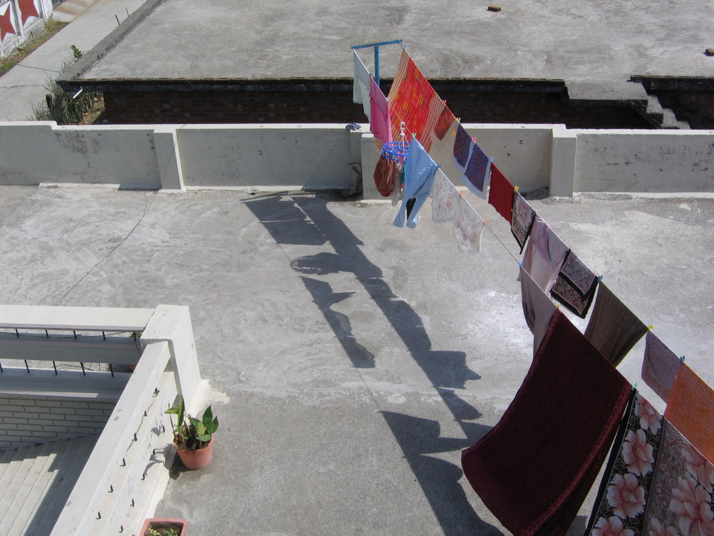 Many homes have usable rooftops, and clothes are often placed out to dry on them!