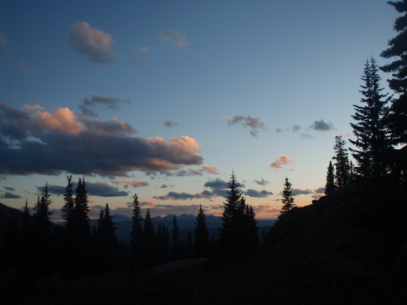 Summer and I enjoying a sunset after descending a peak in Colorado’s Gore Range before the long hike back in the dark.