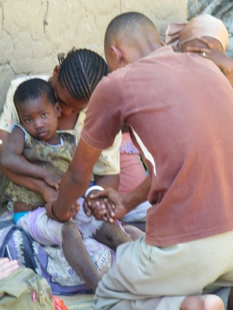 and Tatu sat on a little wooden reed blanket in the dirt. I was told through our translator that Tatu