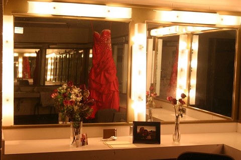 I arrived at the theatre around 8:10 and when I received a text from the manager that they had gotten their tickets and were in the auditorium I then got all the belongings, flowers, dress, (and ring) and met the manager at the side door and down the steps to the dressing room. During intermission and the second half of the concert, without Jennifer knowing I was there, I set up the dressing room with the dress hanging, photos, letters, and made a rose petal trail from the top of the steps to another staircase that would lead to the front of the stage.  When the concert was done, the manager and his stage quickly took down all things from the concert and rolled their best Steinway piano out to the front of the stage, and when I knew for sure the girls were gone I went out and laid the 16th rose, the music, a letter, and the last of the petal trail to the piano.  When all was set, I then texted her friend “Eckert” saying we were ready.