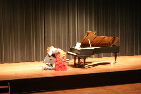 Back in the beginning of Jennifer and I talking countless nights and hours getting to know each other, we would literally talk about everything and learning the hearts of each other.  One night I opened up about the topic of “bucket lists” and things we would like to do before we die.  Jennifer that night opened up about how, no matter how random she thought I’d think it to be, that she would always love to play a really hard piano piece on a grand piano on a stage in a really nice shinny red dress.  At that moment she told me of it, I thought to myself “If I ever came to the point where I wanted to marry this girl and that the Lord would lead to that, I think that would be an epic engagement idea.”