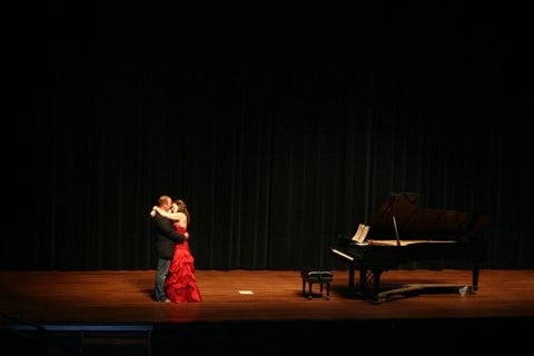 Back in the beginning of Jennifer and I talking countless nights and hours getting to know each other, we would literally talk about everything and learning the hearts of each other.  One night I opened up about the topic of “bucket lists” and things we would like to do before we die.  Jennifer that night opened up about how, no matter how random she thought I’d think it to be, that she would always love to play a really hard piano piece on a grand piano on a stage in a really nice shinny red dress.  At that moment she told me of it, I thought to myself “If I ever came to the point where I wanted to marry this girl and that the Lord would lead to that, I think that would be an epic engagement idea.”
