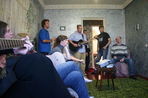 Marina and Vika and to worship the Lord in a small church of believers from two