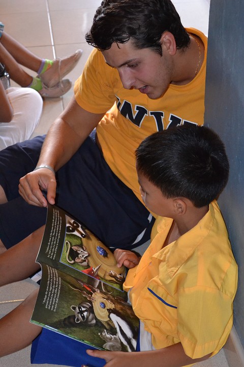 The guys have been doing construction, digging dirt and laying part of the foundation for a house that's being built for one of the local families who work with KIM. We’ve also been reading with students in the children's library, serving food at the community feedings in the afternoons, and just playing sports with the boys in the streets.