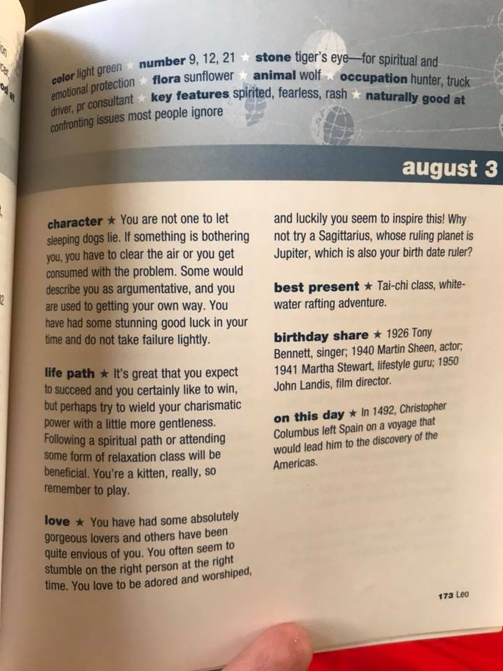 I have also become upset that he has said that there is no other source to draw from than The Bible. While some Christians might question me drawing from a book such as that pictured above with Brady, I have found it to be uncannily accurate just based on what day someone is born. I also believe that God has referenced what it says about the size of my heart, something that was said in my admissions call by the woman interviewing me as well. If I was asked to relinquish all of them outside of The Bible, I would not, even though I cannot anyway, as I also find them valuable on what it says about me specifically. I learned from a non-Christian source that all people who are born on a day that reduces to 3 in number are physically attractive, such as Brady, and that’s how it can say that in that book. What does that mean? I don’t know. But I appreciate facts wherever I can find them and accept whatever is true. It also says that I am adventurous and compassionate, so here I am at Adventures in Missions, launching to help others.