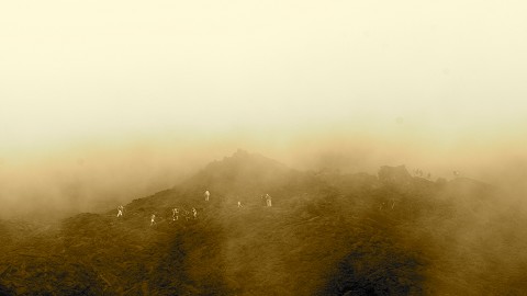 We started our hike at about 6000 feet and didn’t stop ascending until we reached the point where the hardened volcanic rock and lava met the treeline. From that point on we had to move light and fast over the hardened lava. The summit of the volcano was stuck in a cloud most of the day so it was difficult to see very far. The brittle and burnt earth below our feet would crack and crumble with each step. We had to be very careful with the placement of our shoes.