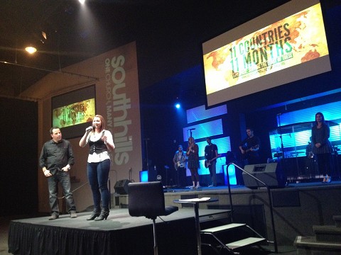 They brought me on stage just before the message and let me share my heart on why I am going on the World Race and how they can partner with me on this journey.