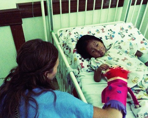There are more patients than there are beds on most days so I found this character sitting near the lobby, arm bandaged and watching cartoons.