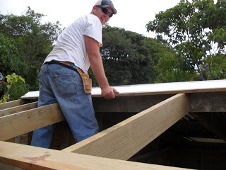 After 2 days of hard work, we were on schedule for finishing on day 3. First, we had to finish up the rest of the siding. After seeing the girls work circles around us the day before, I decided I wanted their help in finishing it up. The rest of the crew started putting in doors, windows, and the electrical cable. A few hours later and it was roofing time!