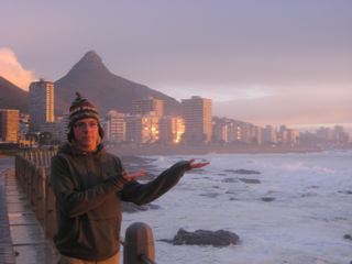 First day I ended up going to the National Art Gallery and walking through some gardens, then the rains came and Eric and I tried to get home, stopping along the way the see if the rains might let up… no go. Drenched, we arrived at the hostel and cleaned up for dinner. And thank God, He cleared the sky on the horizon and we got to see a beautiful sunset. After that we had a wonderful dinner on the ocean (I had Ostrich, Springbok and Kudu steak(all game animals) on a skewer, HEAVEN!)