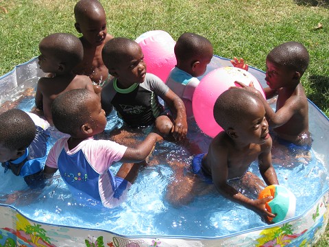 We’ve been blessed the past 2 days to visit two different children’s homes. As you may recall from my Babies and Ice Cream blog, a door had opened for us to visit New Life Home Trust in Nairobi for abandoned babies. I knew they also had a home in Nakuru. I asked Pastor Ayub my first day here if he had heard of this home. He said, yes, you are going there on Monday. God blessed me with not just one New Life Home Trust experience, but two! π He’s amazing! We spent yesterday playing with their 3-5 year olds. We sang songs like Father Abraham, taught them Duck, Duck, Goose, and just played and held them and loved them. They couldn’t stay away from Curt’s guitar when he got it out. Later in the afternoon they got to swim in their wading pools which was so entertaining to watch.
