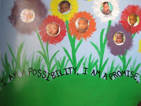 Rachel is about 9 months old and has the cutest fuzzy afro on top of her head. She smiles the sweetest, happiest toothy grin, giggles, and my heart is hers. (I wish I could share pictures, but they asked us not to take any to protect the babies.) Eunice is about 3 months old I’d guess. She is the sweetest, most even-tempered baby ever. She never fussed, she just laid in my arms and smiled and grabbed my fingers and looked around with her huge brown eyes for hours! I love her! #3 is just #3. I never even got his name. He started fussing and I picked him up and started swaying with him and he fell asleep in my arms in a cute, peaceful little brown ball. Again, it was over for me. I was holding him and praying for him and thinking, what in the world could possibly be more important than holding and loving these babies??