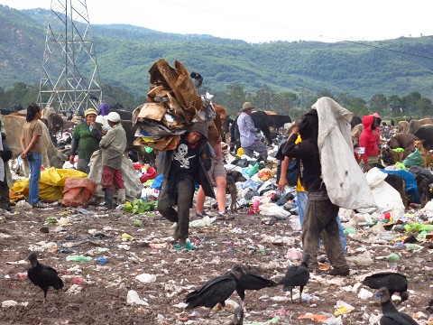 I began to walk up a hill probably composed mostly of trash and greeted people making their living there. Immediately I felt a strange feeling of welcoming I hadnt felt in a long time. Every greeting I gave was followed by the sweetest smile and reply back. From the top of the hill I overlooked the vastness of the scene and focused on a particular area bustling with people and animals.