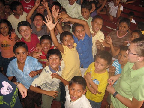 I start off by leading a rousing rendition of Oh-lay-lay. For those who don’t know what that is, it’s a game which requires a lot of yelling (which I’m good at) and spinning in circles (which I’m also rather proficient at. It’s a gift, I know). After Oh-lay-lay we sing some songs, which as was noted in an earlier blog, is a Team Pi specialty. However, due to the fact that a) we were singing with kids, and b) the worship band the night before was nothing short of awful, we really had no expectations to live up to. We opened the set with a classic, “Gozo, Gozo, Gozo, Gozo en mi corrazone,” also known as “Joy, Joy, Joy, Joy down in my heart.” It killed. The chorus of “en mi corrazone” which rang out after we shouted “Donde?!” (where?!) was hilarious. Not wanting to press our luck, we decided to wrap up our two song set with “If you’re happy and you know it.” Lots of clapping, lots of stomping, lots of spinning around means it was a hit.