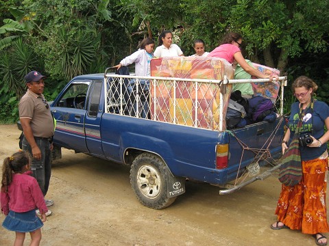 Cristobal tells us to wait in the church for the next hour, then we’ll be on our way. An hour passes. Two hours pass. Three hours pass. Cristobal re-appears to say that the truck is going to be a little longer. Four hours pass. Our food is pretty much gone and we’re starting to get a tad restless. Are we going or not? We’re all a little nervous about going to this village in the first place, but now we’re being forced to sit here in anticipation. Maybe this is God showing us not to go. Confused, we gather in a circle and pray, asking God for clear direction. “Trust me. Go to Rosario.” A fifth hour passes before the truck finally shows up. It’s a small, late 80’s Toyota Tacoma with a partially rusted out body and a cage in the bed. We load up out gear and climb into the bed with the 5 or 6 other people traveling to Rosario with us. To say it was a tight fit would be an understatement. Pastor Cristobal was standing on the rear bumper hanging on for dear life. This was shaping up to be an interesting 3 hour drive, but hey, that’s part of the fun of the World Race, right?