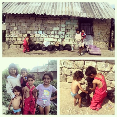 I knew I wouldn’t fully understand their life, so I quickly went outside and tried to find something for the boys to put on. I found a clothes line with 2 pairs of underwear. They were still damp, but I figured it would suffice. Lisa helped and we put the underwear on the boys. Our purpose for going to this house was to help pick up garbage around the yard. Once we started picking up trash, the two oldest girls and the older brother (who was wearing red snow bibs and nothing else) began helping us. They thought it was so much fun. We quickly filled the 9 trash bags that we had brought. Collecting trash was fun. At least when you sing songs and make it fun!!