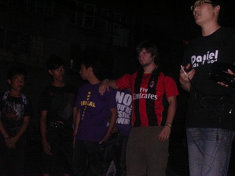 Phillip, Lucas, and me watching along with the street kids