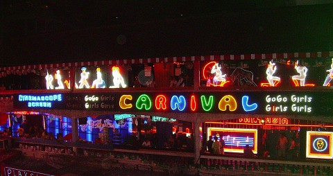 The prostitution industry in Thailand is enormous. There are two main areas, the Nana district and Soi Cowboy. They are lined with bars. Women stand outside to lure the customers inside. Some bars are outside and offer a place for men to have a drink and talk with the women. Some bars are places you can go to play pool. Some places have the front of amassage parlor, and I guess that isn’t a complete lie. Others take you behind curtains to a dimly lit sitting area. There you can take a seat on the plush chairs and watch the women dance in next to nothing on the dance stage. At all bars, a waitress will approach to ask what you would like to drink. It is customary that you also buy a “lady drink” for one of the women. Then the women will entertain the men, charm them, do everything possible to entice the men to pay their bar fine for the night.