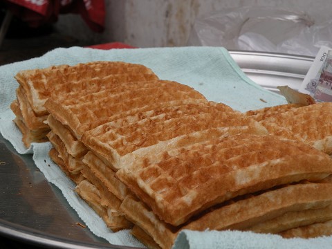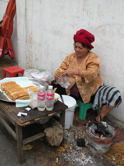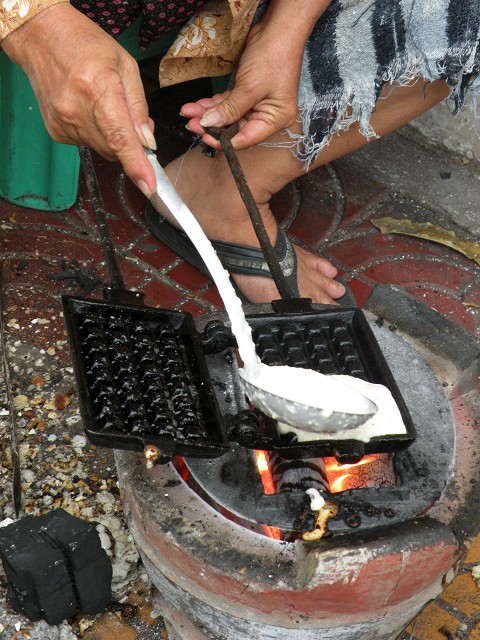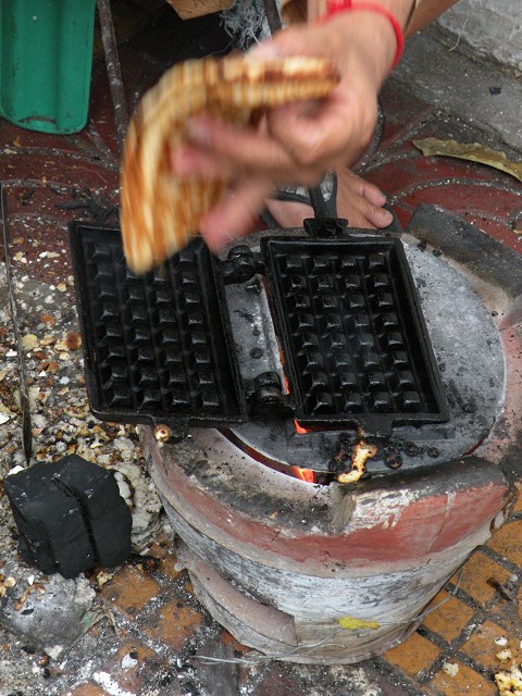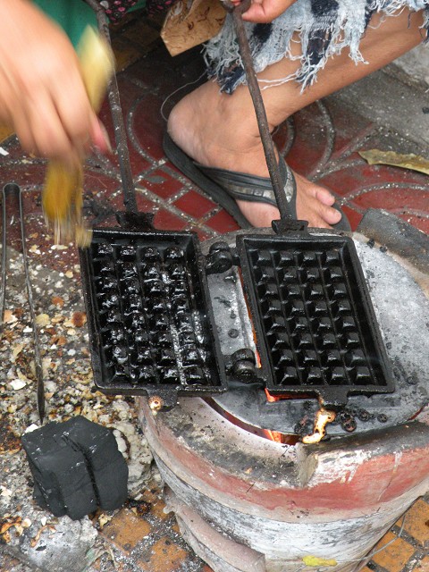 So, the other day we got back to the hotel and decided that we needed an afternoon snack. Over the week and a half that we have been here we have been seeing people selling what looked like waffles. Just down the street from our hotel there is a lady who sets up her little firepot and griddle for a few hours. Well, we decided we needed to try them…and we have decided that the best waffles in the world are made on the street corner with pretty basic materials in Cambodia. We think that the secret ingredient is a bit of coconut. Believe me, we will be taking quite a few meals there!!!