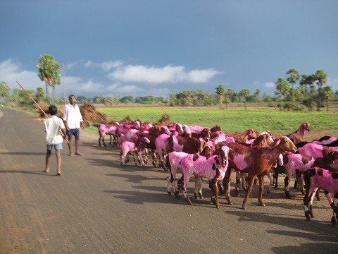 Music blares from a temple speaker. A young woman cracks open a coconut and pours the juice over little figurines. The man beside her murmurs some prayers, lays down flowers, and bows down in front of temple. Idol statues cover the shelves of a home we enter. Women have shaved heads because they have sacrificed their hair at a temple. These are some of the everyday evemts we experienced in the village.