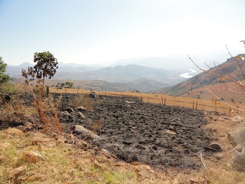 Well…on the second day we split up and were working on two different pieces of land. In the middle of the burn Steven (anther racer) and I were in the middle of the two groups walking away when we heard a guy yelling Stevens name from the group behind us. Then we distinctly heard someone yell “HELP.” It is a good thing Steven and I were still close to both teams because we could barley hear the people yelling from where we were at and there was no chance the other team could have heard. I started running in the direction with my trusty tree branch at pretty good speed. I assumed it was just a small matter that wasn’t too demanding. Then, as I came over the hill, I saw that my assumption was wrong. The fire was out of control! It had gone past the barbed wire fence that divided some of the property and was headed towards the church the baby house, where there are about 20 toddlers. I ran to the barbed wire fence, squeezed my way through and started heading toward this huge grass fire. About this time the other group was running towards the raging fire. They had seen me and Steven running, heard the distant commotion and were coming to help. We had about 20 people fighting a fire that in some places was over 7 feet high. Our tree branches burned within seconds because of the heat of the flames so we had to get creative. At one point I had a nasty dog blanket that I had soaked in the toilet water and was trying to beat out the fire with that. (those of you who know me know that only under a dyer situation would I douse a dog blanket in toilet water then sling it by my face.) Some of the guys were haling buckets of water from a small pond about 30 yards away and others were just freaking out unsure of what to do. It was scary! The fire got all the way up to about 6 feet away from the baby house and 3 feet away from the Church before we finally managed to get it out. By the end of it we were all covered in black soot and our lungs struggled to take in air after inhaling so much smoke. Most of us had red, sunburn looking faces, singed arm hairs, and exhausted looks on our faces. We were all in shock of what just happened.