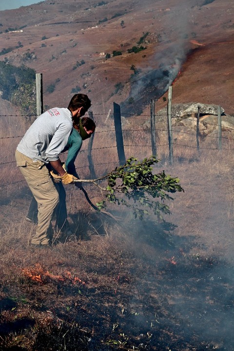 So, last month when we were in Swaziland working at the orphanage one of our jobs was to do fire breaks around the property. That way if a wild fire broke out it would stop at the fire break and not burn the ministry down. A fire break, so we learned, is a controlled fire about 6-8 feet in width that goes around the property. Needless to say it is a dirty and smokey job. We use freshly cut tree branches to keep the fire in line and to squash the fire when it reaches the correct width.