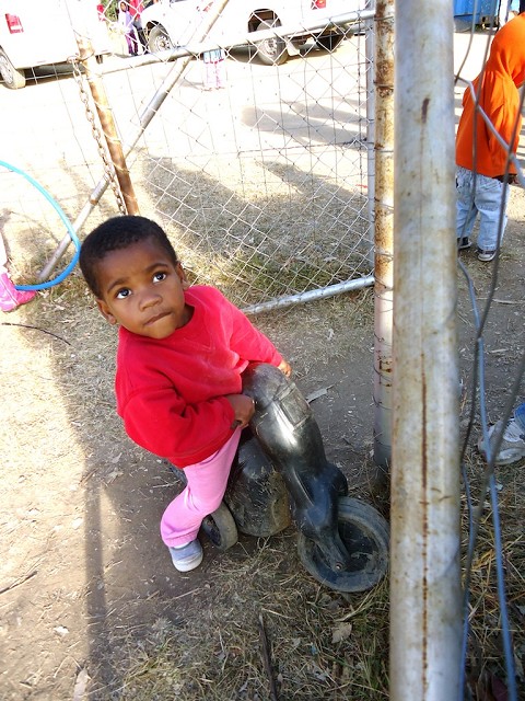 (one of the children playing on one of their few toys) (The tool rack we built in the garage)