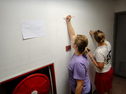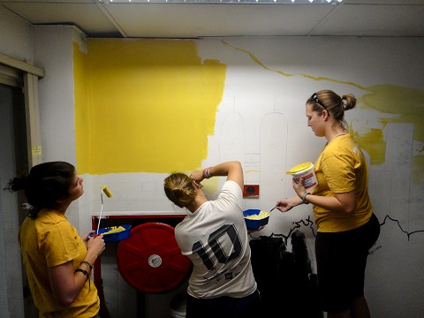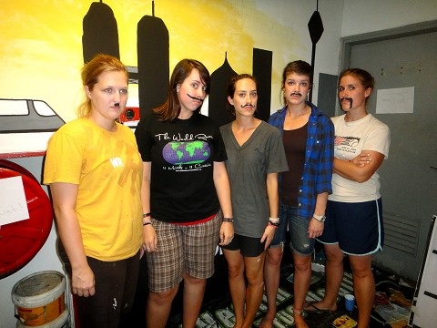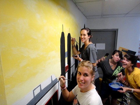 (tracing the mural, painting the sky, and doing some more painting, all while having fun of course.)