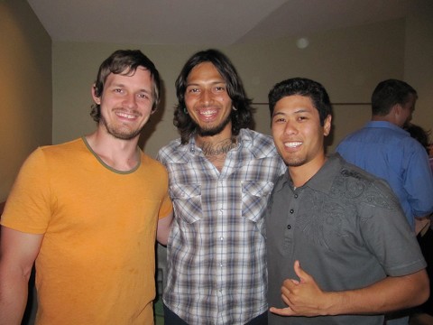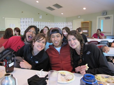hangin out in the dining hall- Dan, Rachael, and Kris