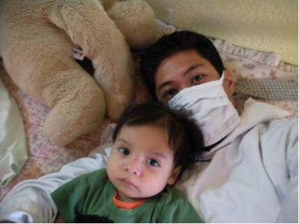 Waking up from nap time… Masks and smocks are worn at all times as the kids’ immune systems are weak