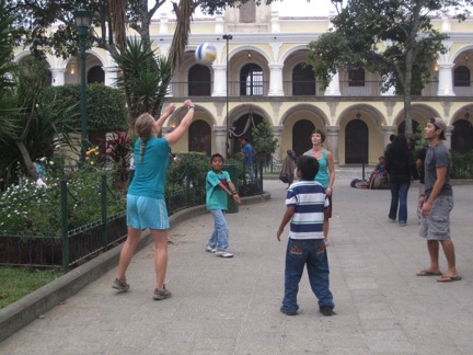 V-ball at Plaza Mayor with the street kids during Semana Santa