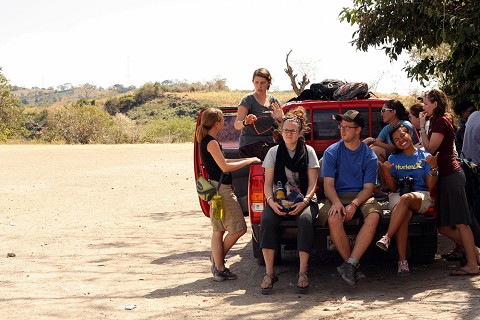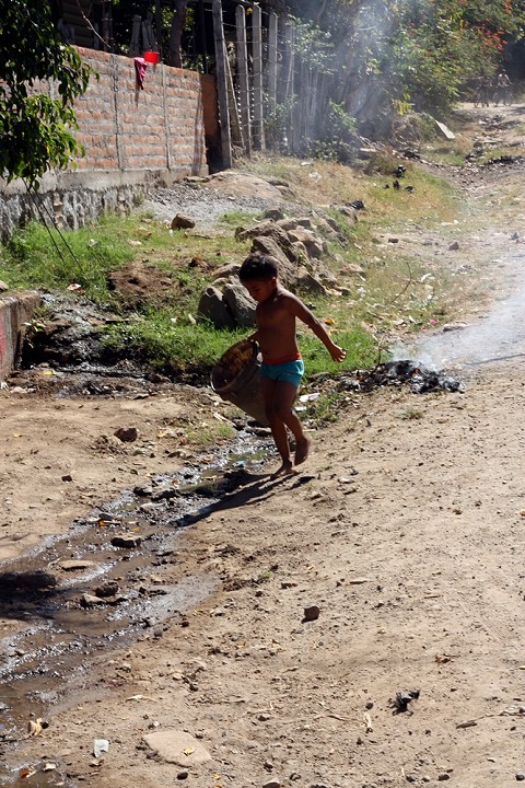 All twenty of us crammed into one small red pickup and drove to some impoverished areas outside of Apestepeca. We’ve been piling a lot of people into really small vehicles. A short drive with us all hanging on the side of the pickup, we arrived at a small community built by some Canadians a few years ago. The houses are small and there are bits of trash scattered everywhere. We split into small groups and walked around praying for these homes.