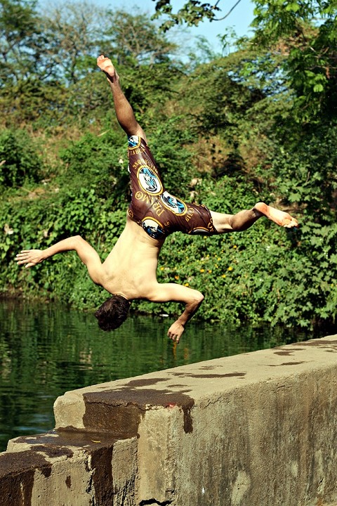 We went swimming yesterday. Along trails cut through the sugar cane fields, we walked to the dam. Joey cracked open a sugar cane stalk and peeled it with his teeth. He says it gives him the buzz of coffee, but without the shakiness. I haven’t found that to be true. It’s just sugar. The sun is blisteringly bright here. It feels like I’m stuck in an oven, set to broil. The water by the dam felt warm near the surface and freezing a few feet down. Crater and Joey jumped off a small cliff nearby and took turns doing flips off the bridge, trying to outdo each other. We threw sticks at a mango tree on the way back, trying to dislodge ripe fruit from the branches. I must have eaten half a dozen. I’ve still got those orange strands stuck in my teeth. I’ve been trying to get them out for the past day.