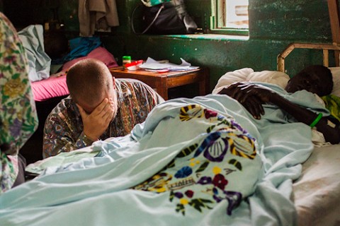 Chase from D squad, praying over the sick at the Yei hospital