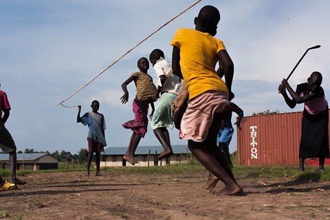 Jumping rope and cutting the grass at the orphanage