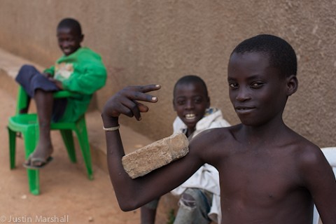 All of these kids have been abandoned, with no home and no parents. They've been orphaned to the streets. They look like the most innocent of childhood gangs. They even have their own gang symbols, which probably don't amount to anything serious. Of all the people I've met in Rwanda, they've been the most kind.