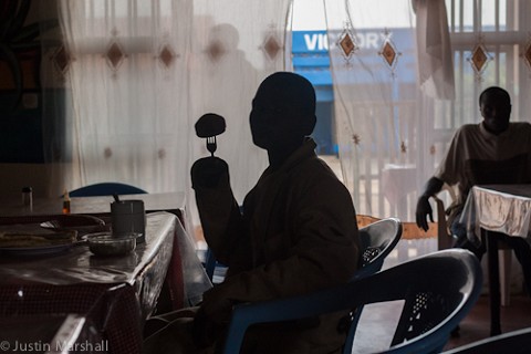 I've made friends with a crew of glue huffing street kids. I can't even remember how I met them at this point, but almost every afternoon, I hang out with a few of them. Usually I find my buddy, Jean-Pierre, behind the New Savannah restaurant. He wears this beige jacket that's so big it covers his hands entirely. I don't speak his language and he doesn't speak mine. We communicate through gestures and lots of pointing. Sometimes I manage to find someone to translate, but mostly we just hang out in silence or mutual confusion.
