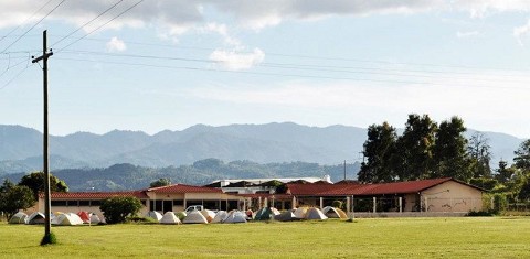 We are in the mountainous state of Quiché staying in a town called Santa Cruz del Quiché. The bus ride from Guatemala City to Quiché was about 4 hours going up and through the Guatemalan mountains. We have a wonderful host, Agape in Action. They are graciously allowing 60 of us to set up tents on their property and use their facilities. Agape in Action is a ministry that works with teams of doctors, nurses, and dentists that go into the Mayan villages for clinics as well as partner with the Hospital across the street. The weather has been rainy with lows around 56 (but I think its much colder than that – I am so incredibly thankful that I brought a 25 degree sleeping bag but wishing I would have thought about a sweatshirt) and highs of about 75 degrees. Sleeping in my tent hasn’t been horrible but the occasional flooding doesn’t excite me in the mornings.