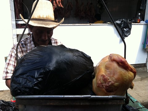 I have found myself helping out in the kitchen quite a bit which is pretty funny as I am no chef! It has been a fun, interesting, and challenging experience buying the groceries at the Despensa Familiar and market. Cooking for 65 people everyday for breakfast and dinner is another challenge in itself but it has been a learning experience for us all. I am thinking I should have learned some more cooking skills from my uncle before I left. Below are pictures of buying chicken from the carneceria and of Vacenta and I making some delicious homemade limeade with the limes that were picked from the lime tree in the garden.