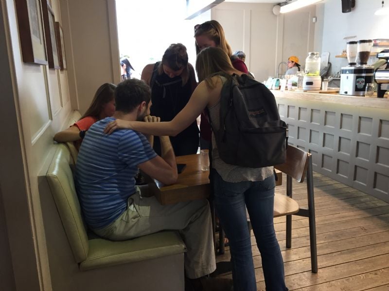 Rewind a few days to Saturday. I was talking to Teagan and told her that I missed having intellectual conversations, especially relating to science. Between growing up with my friend Will who was always down for a discussion about the difference in people’s perception of colors and surrounding myself with premed friends for most of college, I was very used to these types of conversations before the Race. Now, don’t get me wrong, intellectual conversations happen a lot on the Race, they are just mostly centered around faith and theology (which makes total sense and are great but I just really miss science). I’m a HUGE nerd, especially when it comes to science, and I was missing nerding out over cool new genetic technologies with Christy, Ben, and Sam in Dr. Hale’s Genomics class. I was missing chemistry club and freaking out with Sprice (Sarah Price, but we all call her Sprice) about our Boller presentations and needing to finish our theses. I was feeling like a tiny part of my normal was missing. And then God put Jason next to me in a coffee shop.