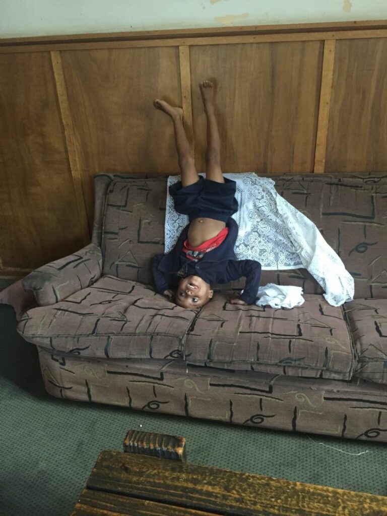 One my first day at the center, some of the kids started doing head stands and so I started playing with them. They asked me if I could do a head stand and I tried and failed, but I did try to teach them a couple of things I’ve learned. Malachi was in this bunch, and over the month I saw him trying to master what I showed them at the beginning.