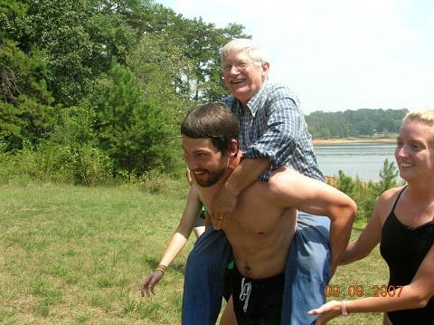 Go KYLE! This is Kyle carrying the wonderful Gary on his back as Colleen assists.