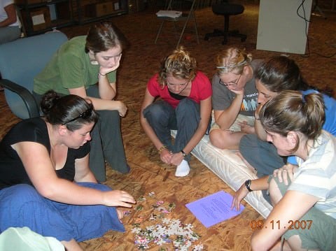As Gary taught, we did an activity and our team had to try and put the puzzle together with only one person touching the pieces; the rest of us were only allowed to assist verbally. And as we started doing well, Gary (as satan), came by and destroyed part of our puzzle. It was a great example of how we’re going to have obstacles in ministry as we try to unify to serve Christ. Satan will come to discourage us and frustrate us, but it’s how we resond that matters- will we allow Him to have victory? Will we allow Him to frustrate and create division? NO – Satan has no place here. We have God our side and no one else is more victorious, more powerful, more loving, to fight for us – It’s gonna be a great year!