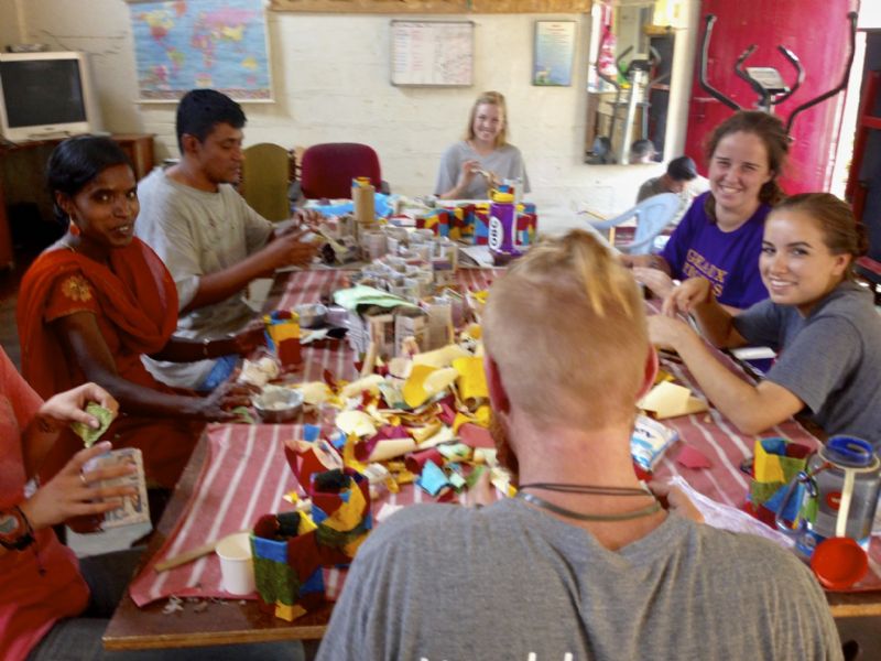My team is staying in Bangalore, with this amazing Indian family who spoil us with hot tea three times a day. They live in a house that also serves as the women’s unit of their drug and alcohol rehab center. The girls have been staying here and the guys stay at the men’s compound, about fifteen minutes away. Monday was our first day to go to the men’s home and we helped make crafts for them to sell to a local church to support the ministry.