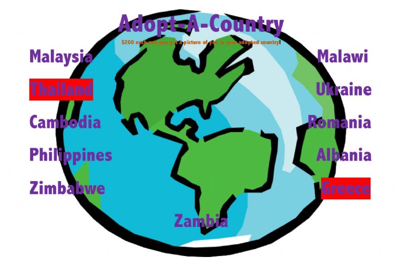 By adopting whatever country you desire for the written price, not only will you be supporting me in my mission trip, but you will get an opportunity to be pictured in that country. Each country has an adoption fee of $200 donation.