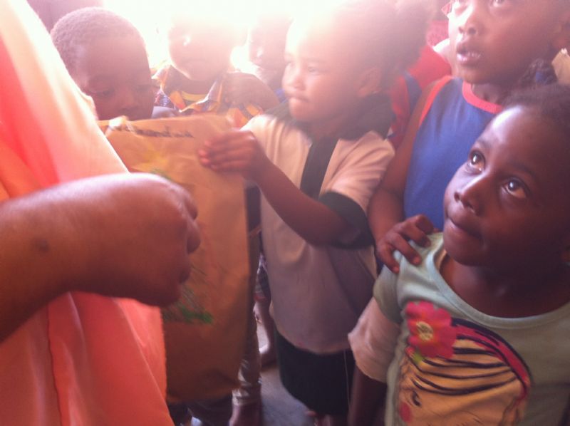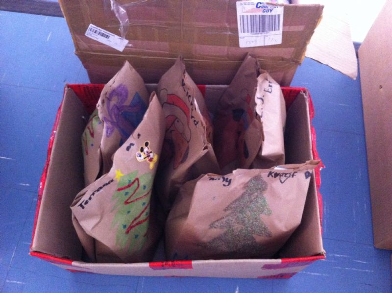 Since they finish before Christmas and don’t return to school until January, the school puts together a big early Christmas party and picnic. During the afternoons of our first 2 weeks there, we decorated over 250 brown paper bags for the kids’ presents. This involved LOTS of glue and glitter.