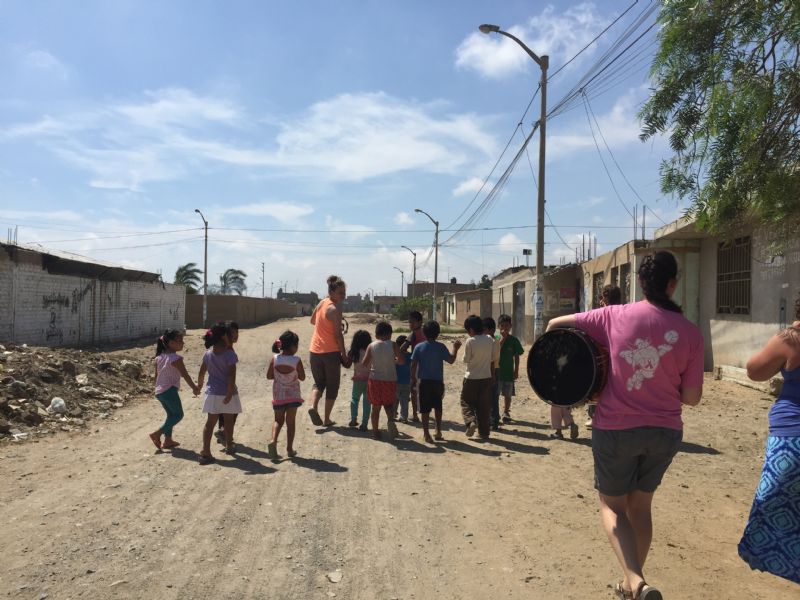 We walk a few more blocks in the blazing sun, and I feel a bit like the Pied Piper, with so many kids following our silly, loud, gringo parade! We arrive back at church, and I look around to see bright eyes, smiles filled with light, and curious but trusting faces looking back at me. Now, it’s time to teach them about the One who will change their lives. The One who brings hope, peace, joy, love. Praise God, I’m here in Peru and ready to work alongside God this month!